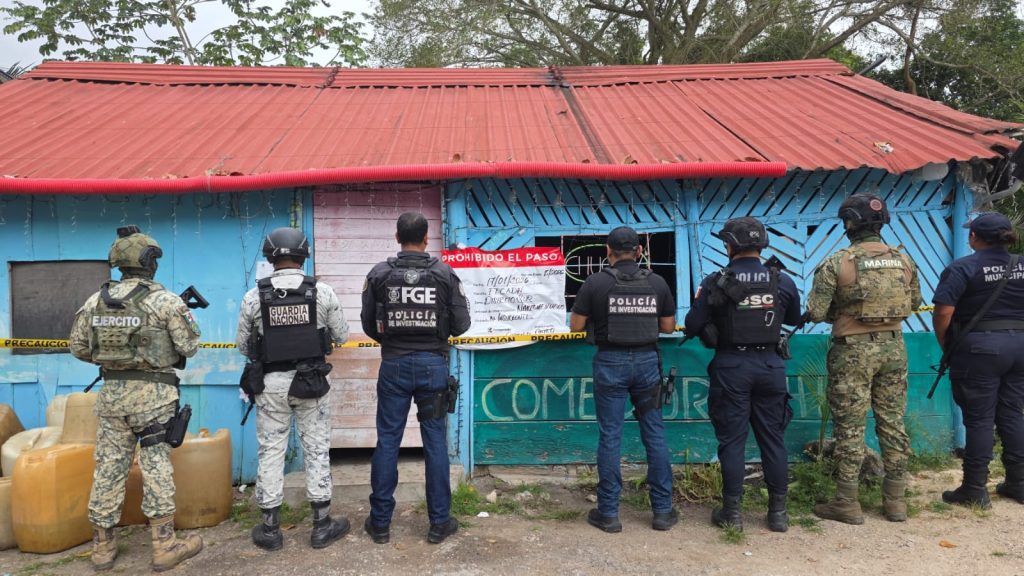 Elementos de la Policía de Investigación, adscritos a la Fiscalía General del Estado, en coordinación con la Guardia Nacional, Secretaría de la Defensa Nacional y Secretaría de Marina, cumplimentaron cinco órdenes de cateo, en las que aseguraron presuntos estupefacientes; además, cerca del lugar donde ejecutaban uno de los mandatos judiciales, detuvieron a un masculino por su posible relación en hechos probablemente constitutivos de delitos contra la salud, en su modalidad de narcomenudeo, en este municipio y en Othón P. Blanco.