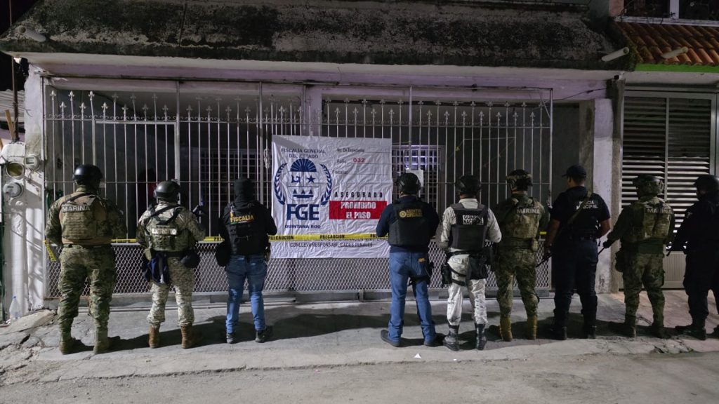En Othón P. Blanco, el primer mandato judicial tuvo lugar en un inmueble ubicado en calle Justo Sierra, entre calles Veracruz y Pípila de la localidad de Nicolás Bravo. Las autoridades participantes aseguraron hierba verde y seca similar a la marihuana, sustancia sólida de color rosado, cargadores metálicos y un chaleco táctico.
