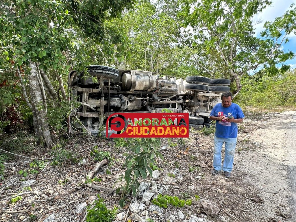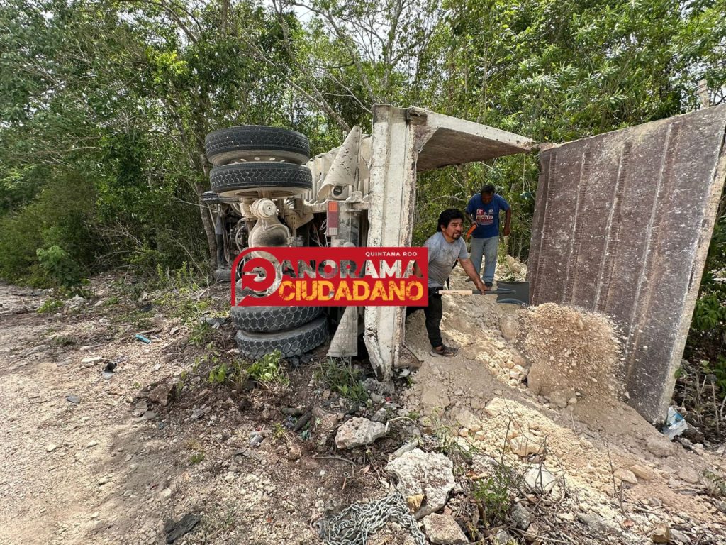 Al parecer el material era trasladado a una obra en la ciudad de Cancún y al ver sus compañeros el accidente no dudó en bajarse para ayudar y voltear al camión.