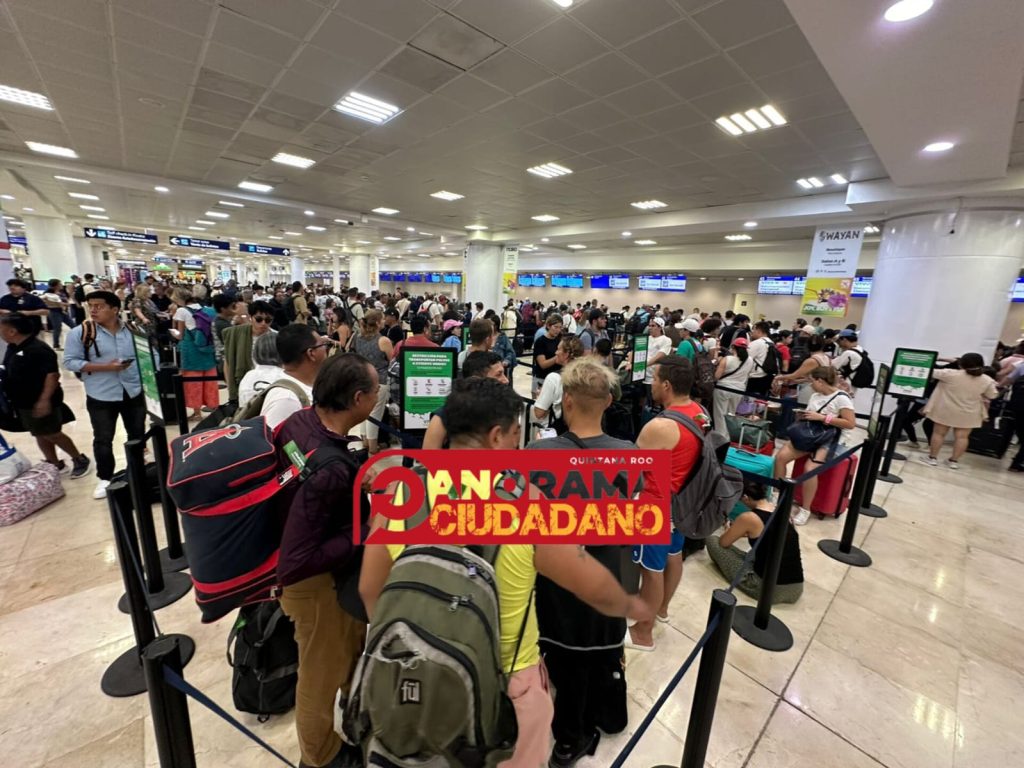 Abarrotado de turistas se encuentra el aeropuerto Internacional de Cancún, que intentan salir del Estado antes de que impacte las costas quintanarroenses el huracán Beryl.