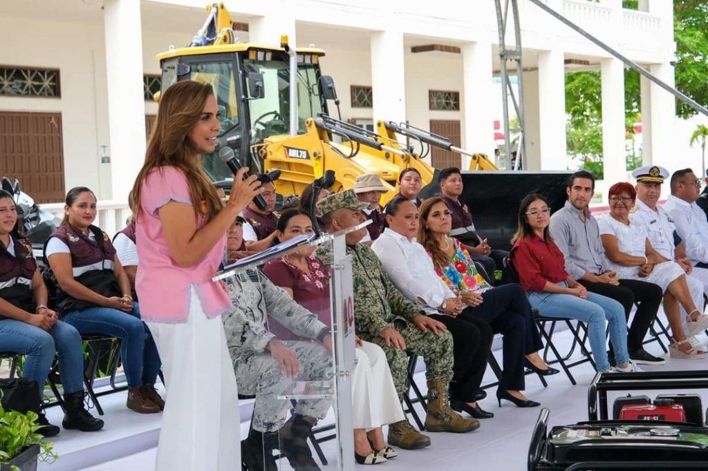 La titular del Ejecutivo entregó vehículos y equipo con inversión de 15 millones 654 mil pesos, consistente en motosierras, retroexcavadoras, plantas de energía eléctrica, drones, equipos de radiocomunicación y vehículos especializados como cuatrimotos y motos acuáticas que, sumadas a 7 camionetas Silverado que donó la Secretaría de Seguridad Ciudadana, dan gran empuje para seguir redoblando esfuerzos en protección civil.