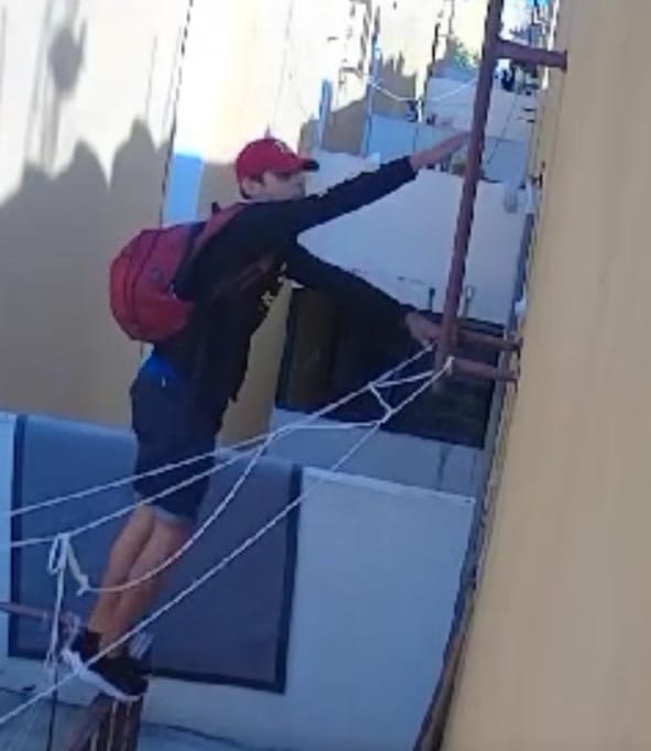 Y es que uno de los habitantes de la zona grabó a un malandro, como sube las escaleras de los departamentos, después se encarama en el barandal para posteriormente brincar a las escaleras que dan a la azotea del edificio.