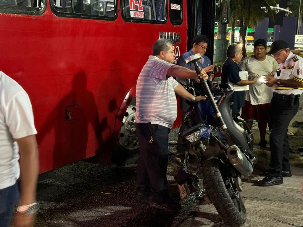 Un motopatrullero resultó lesionado la noche de ayer martes cuando fue impactado por un autobús de trasporte público, sobre la avenida Kabah.