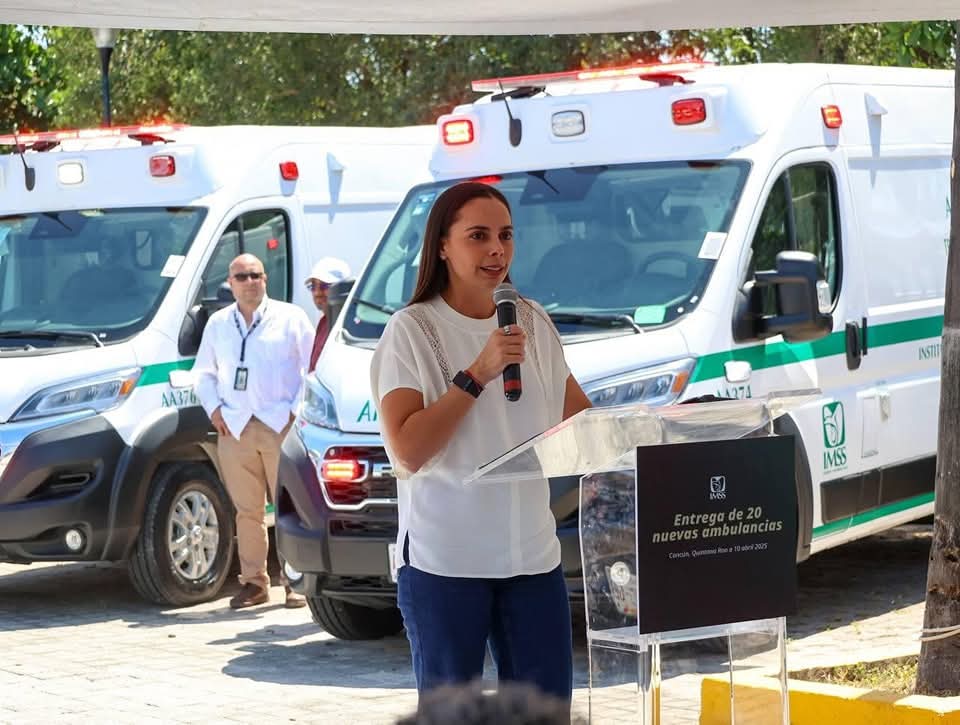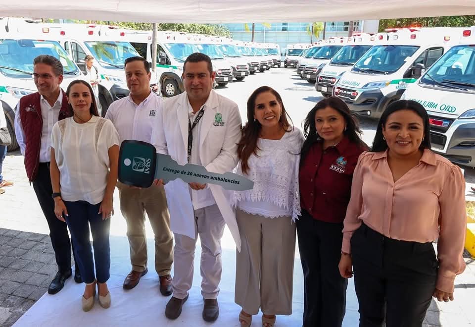 Como parte del fortalecimiento a la infraestructura en el sector salud para beneficio de las y los quintanarroenses, la Presidenta Municipal, Ana Paty Peralta, y la gobernadora Mara Lezama, atestiguaron la entrega de 20 nuevas ambulancias para traslados programados en los ejercicios 2025, 2026, 2027 y 2028, asignadas a hospitales y unidades médicas del Instituto Mexicano del Seguro Social (IMSS) de toda la entidad.