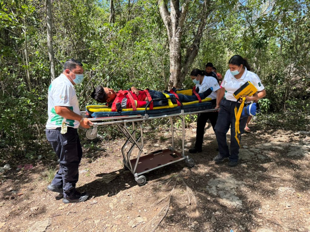 Relató que estaba en la orilla del cenote cuando perdió el equilibrio tropezó y cayó al hoyo de unos 3 metros de altura.