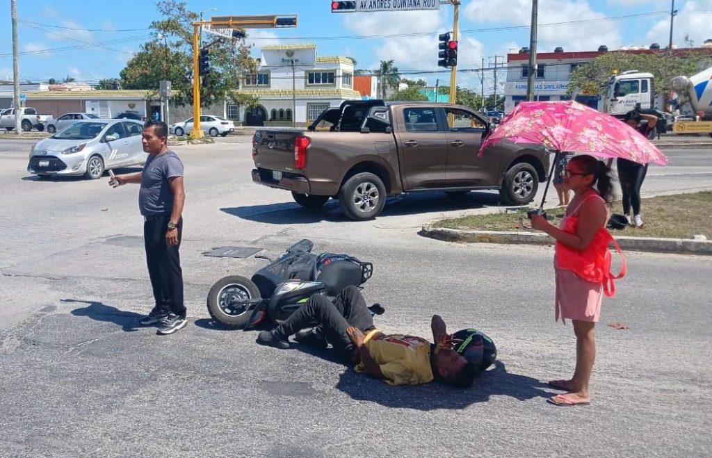 La pareja transitaba en el carril lateral de la avenida Andrés Quintana Roo frente a la región 95, cuando el conductor de una camioneta Nissan Hilux salió sin precaución de la avenida Comalcalco y les hizo un corte de circulación.