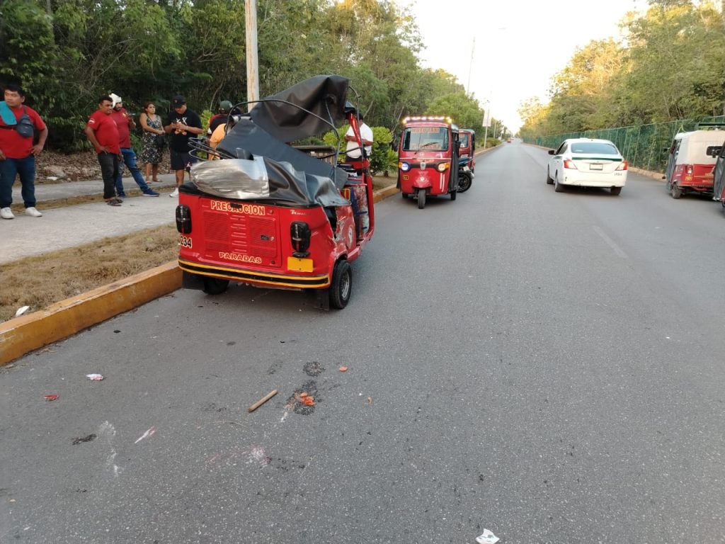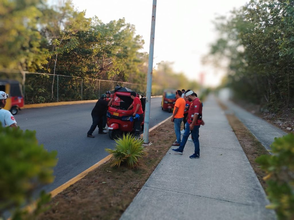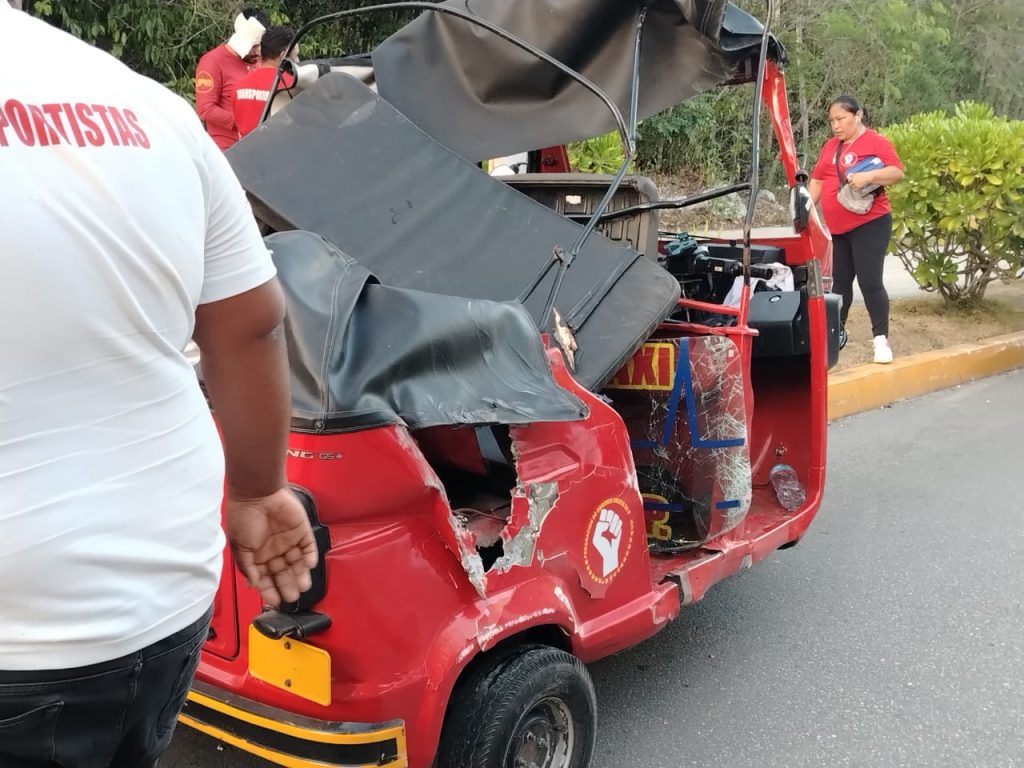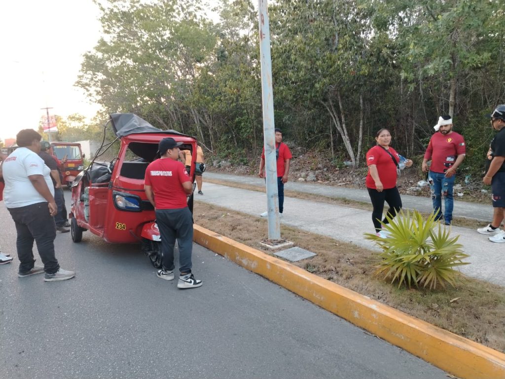 Un motaxista termina su viaje volcado con todo y su pasaje en la región 260, los compas del chofer se movilizaron y llevaron a los lesionados al hospital ante de la llegada de las autoridades.