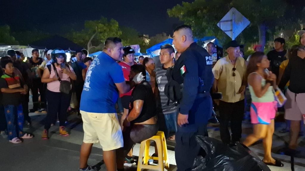 Un pleito entre un frutero y un hombre que se dedica a cantar se registró esta noche en un tianguis del fraccionamiento Paseos del Mar, ubicado en la supermanzana 251.