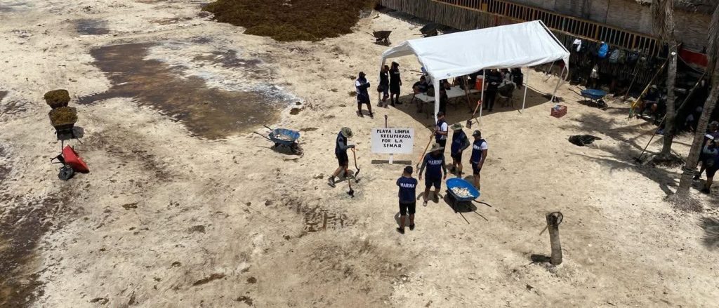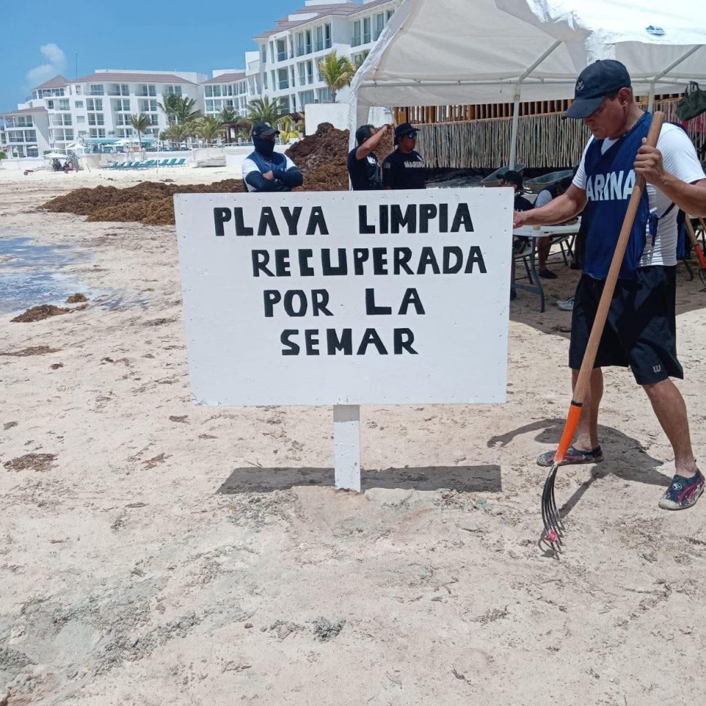 La Secretaría de Marina, a través de la Armada de México, por conducto del Sector Naval de Cozumel, en el marco de la Estrategia de Atención al Sargazo de la Semar, informó que nuevamente se desplegaron 80 elementos navales en la zona costera de Playa del Carmen, quienes hasta el momento han logrado la recuperación de 1,650 metros cuadrados de playa en la localidad.