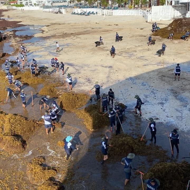 Para eficientizar las acciones contra el sargazo, se han realizado reuniones de coordinación entre el Sector Naval de Cozumel, el Gobierno Municipal de Playa del Carmen y la ciudadanía. De esta forma, se llevan a cabo tareas de recolección con el personal naval desplegado, mitigando los efectos del arribo masivo de sargazo.
