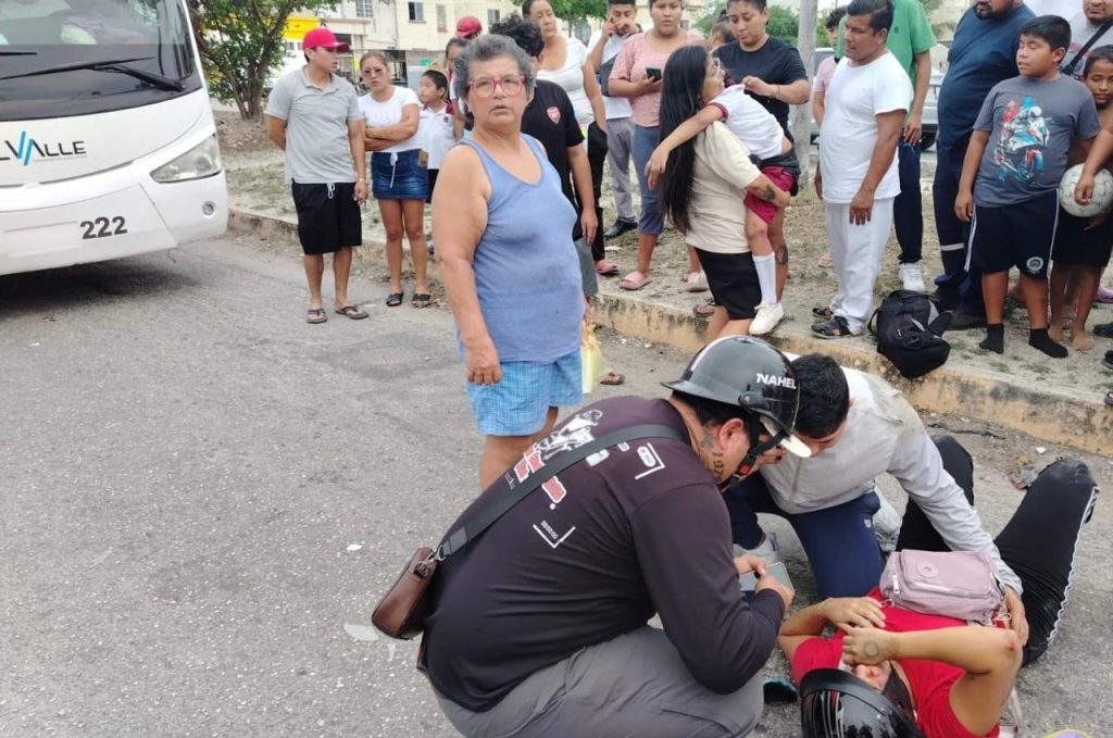 Tras el impacto la mujer cayó al suelo junto con su hijo sufriendo lesiones de consideración que ameritaron la valoración de paramédicos.