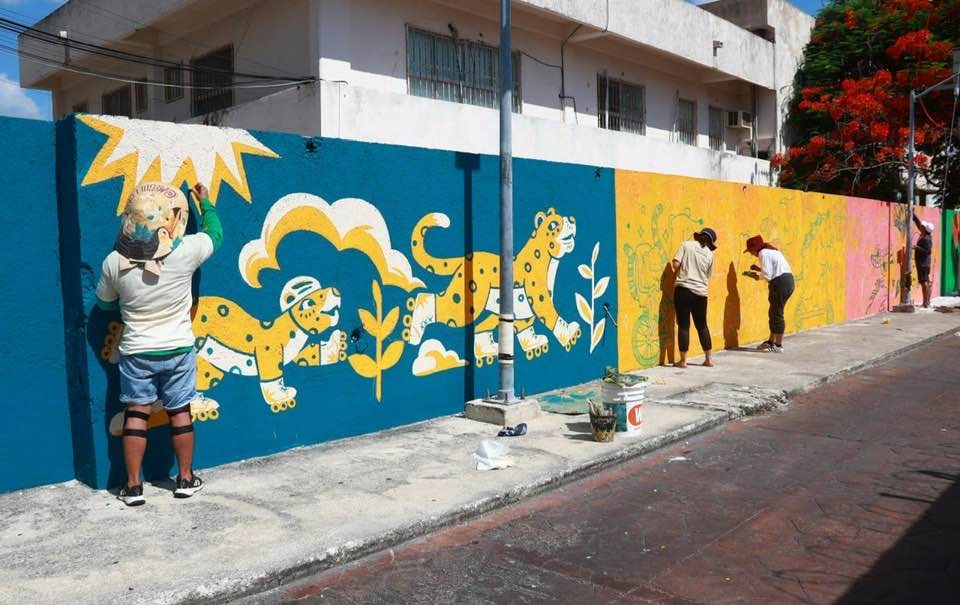 Como parte de la actividad que se realiza cada mes en el centro de la ciudad, los artistas locales Miguel Castillo, Fernando Barrera, Elizabeth Albornoz, Javier Aguilera, Josué Tamayo e Iraide Pinto plasmaron su talento en diferentes murales en bardas a lo largo de la avenida Nader, utilizando la paleta de colores de la Zona Fundacional y elementos que representan la identidad y el corazón de Cancún, como palmeras, iguanas, coatís, flores, jaguares, entre otros.