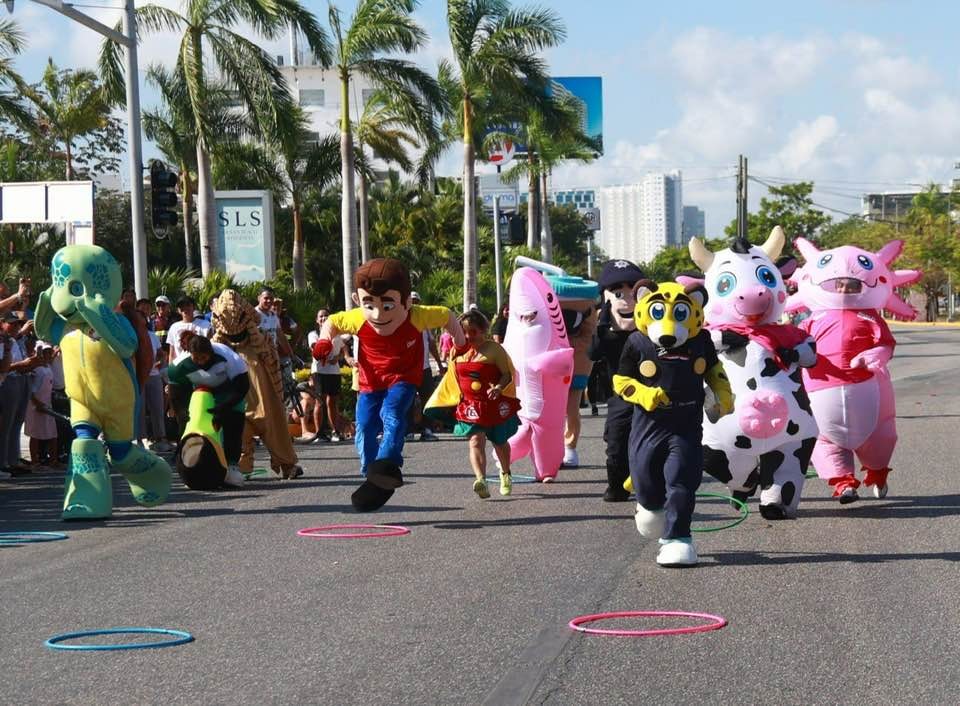 Con una divertida carrera de botargas, stands de actividades lúdicas, deportivas y recreativas, así como la pintura de murales, el Ayuntamiento de Benito Juárez, en coordinación con varias dependencias, realizó con éxito la séptima edición del programa “Paseo Cancunense” por las avenidas Bonampak, Nader y Uxmal, para sano esparcimiento de las familias locales.