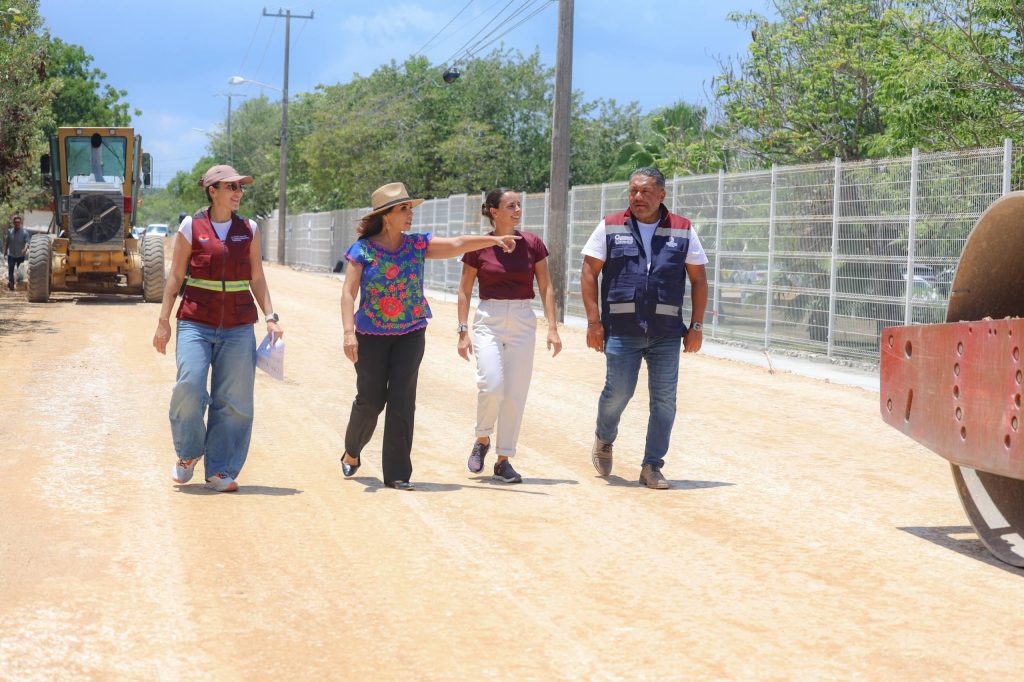 La Presidenta Municipal, Ana Paty Peralta, y la gobernadora Mara Lezama, realizaron un recorrido de supervisión en la repavimentación de la Calle 82, entre Avenida Bonampak y Calle 45-A, a un costado de la Universidad del Caribe, obra que beneficiará a las y los vecinos del lugar, pero sobre todo a cientos de estudiantes de dicha casa de estudios.