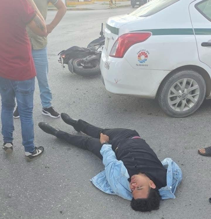 Un joven motociclista terminó con lesiones de consideración luego de impactarse contra un taxi la tarde de este domingo en el fraccionamiento Paseos del Mar.