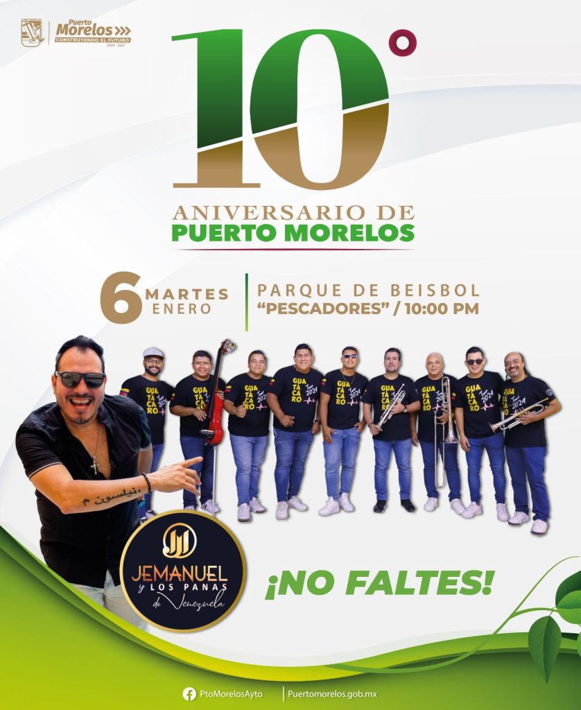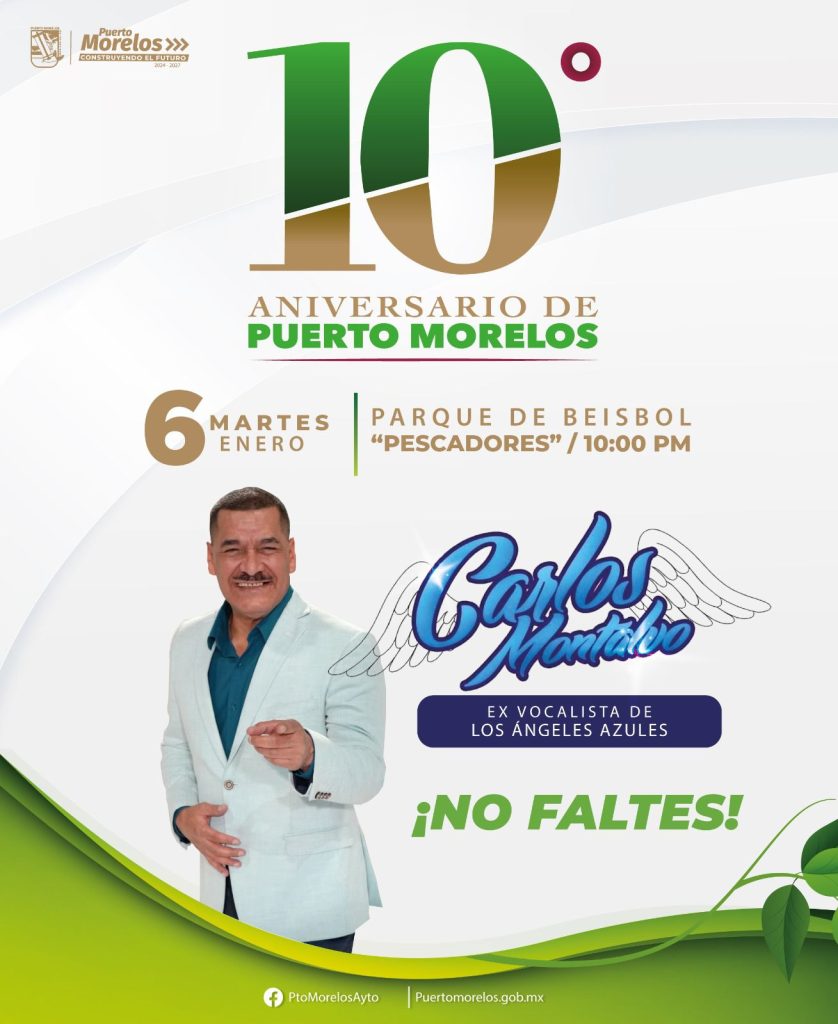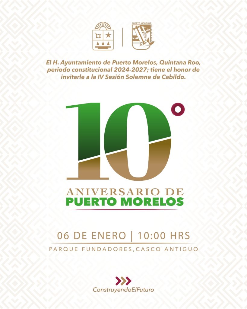 “El municipio de Puerto Morelos está listo para celebrar el próximo martes 6 de enero el 10º aniversario de su creación, con eventos cívicos y artísticos en los que se hará patente el orgullo de todos los que a diario trabajamos para hacer de este un mejor lugar para vivir”, manifestó la presidenta municipal Blanca Merari Tziu Muñoz.