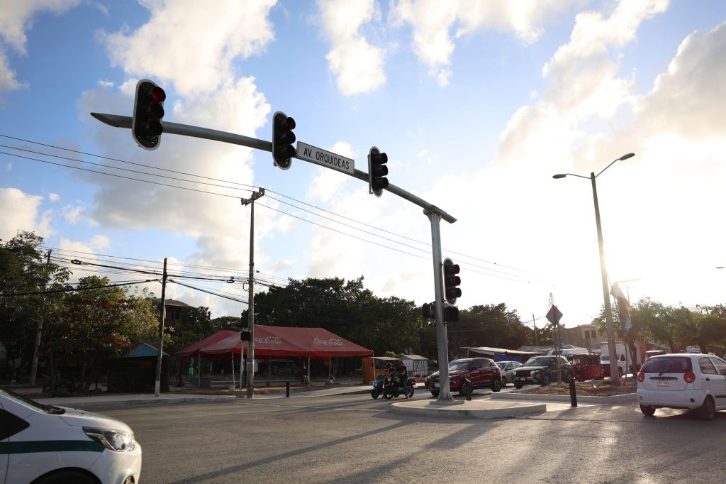 En esta ocasión, la Alcaldesa visitó el cruce de la avenida Orquídeas con avenida Lak’in, donde constató el progreso de la obra de modernización de la red de semáforos, que registra un avance del 58 por ciento. “Este proyecto forma parte de un programa integral que contempla la instalación de semáforos vehiculares y peatonales, así como adecuaciones geométricas para mejorar la circulación y tecnología de control de tráfico enlazada al Centro de Monitoreo” detalló.