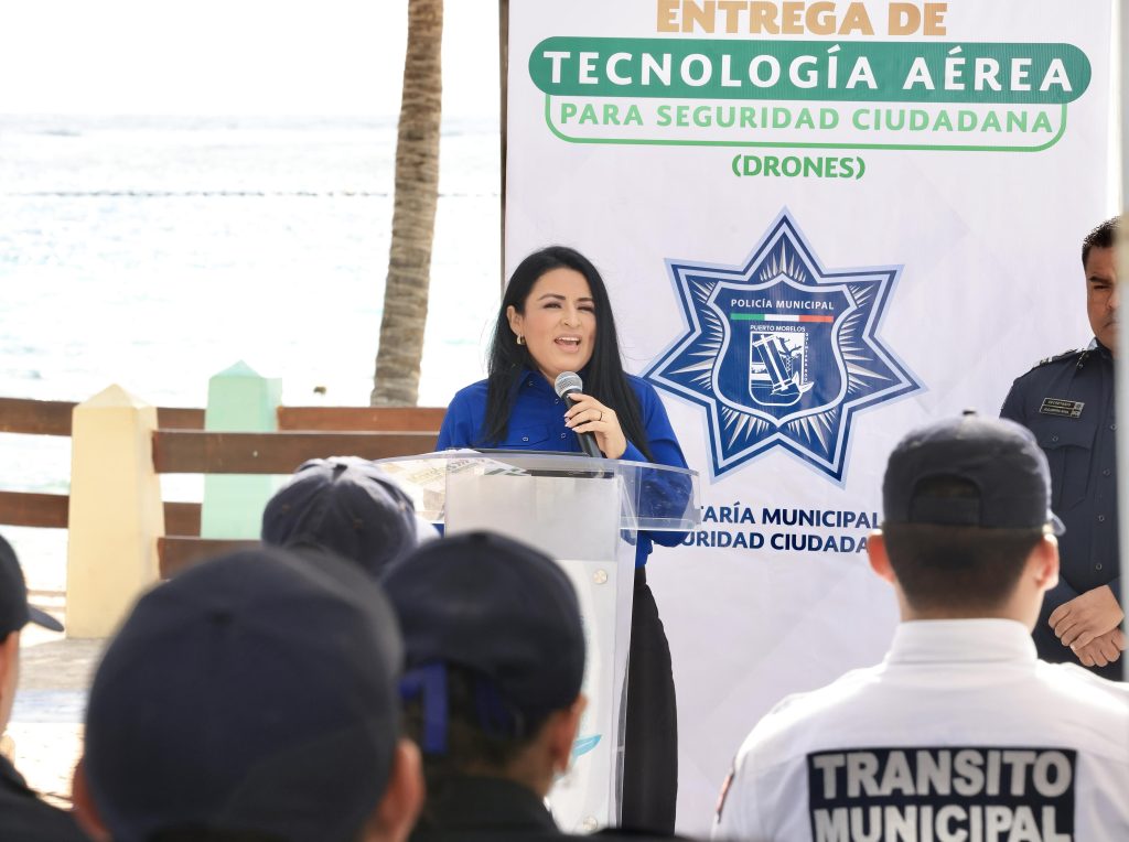Durante el evento, realizado frente a la playa Ventana al Mar, la alcaldesa destacó que esta acción forma parte del proceso de modernización y profesionalización de la seguridad pública en el municipio, al integrar herramientas tecnológicas de vanguardia que fortalecen las capacidades operativas y estratégicas de la Secretaría de Seguridad Ciudadana.