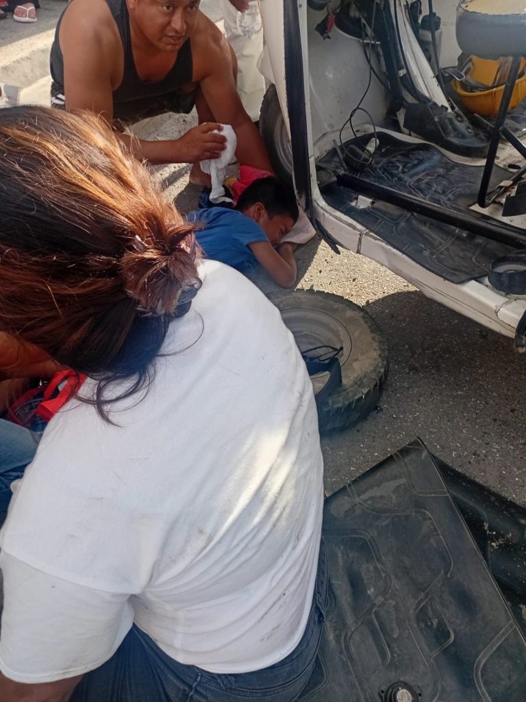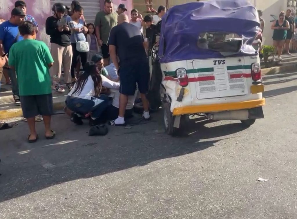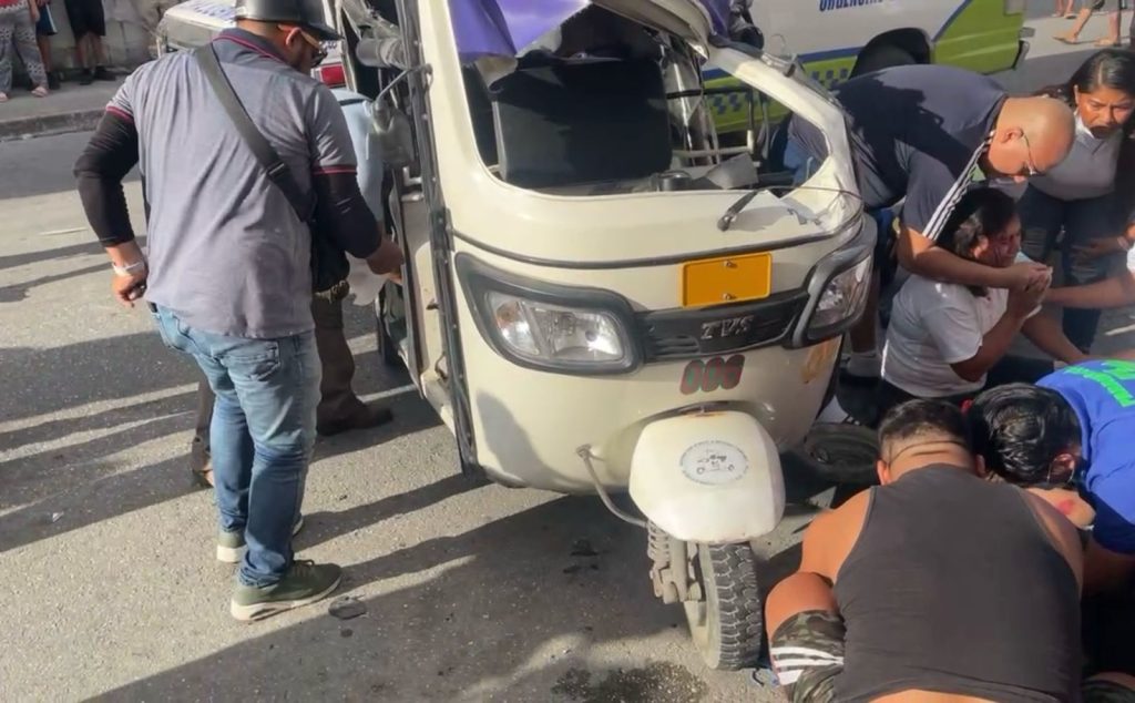 El chofer del mototaxi y sus pasajeros, una pareja y su hijo menor, resultaron lesionados, por lo que testigos los ayudaron a bajar del vehículo.