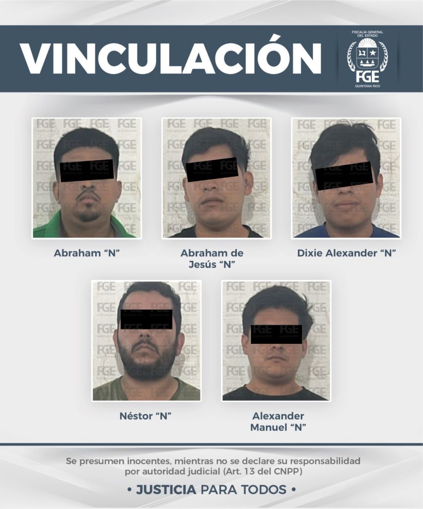 Los ahora imputados, identificados como Abraham “N”, Abraham de Jesús “N”, Dixie Alexander “N”, Alexander Manuel “N” y Néstor “N”, fueron detenidos en las inmediaciones de una bodega ubicada sobre la carretera federal 186, en el tramo Chetumal–Villahermosa.