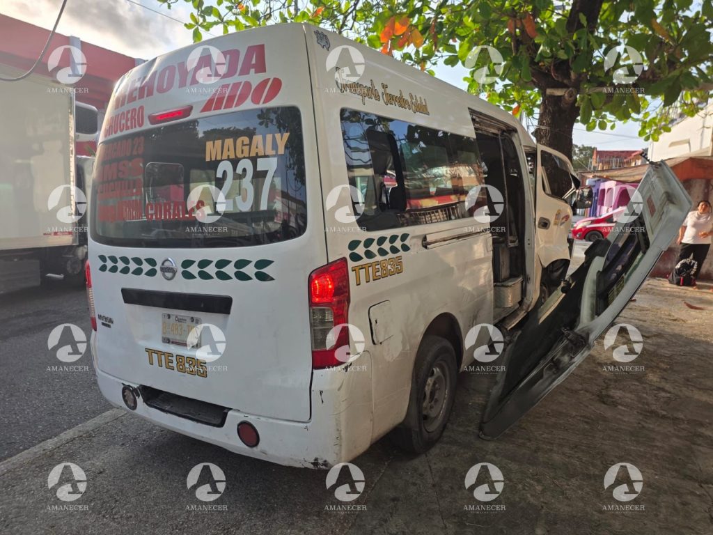 Chofer de TTE estampa su Urvan con pasajeros y los abandona a su suerte en la Supermanzana 72; autoridades intervienen para apoyar a los afectados.