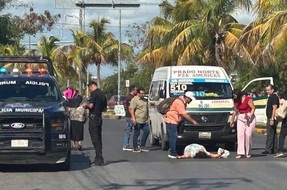 De acuerdo con los primeros reportes, la mujer intentaba cruzar la avenida Xcaret cuando fue impactada por una combi, quedando tendida sobre el pavimento.