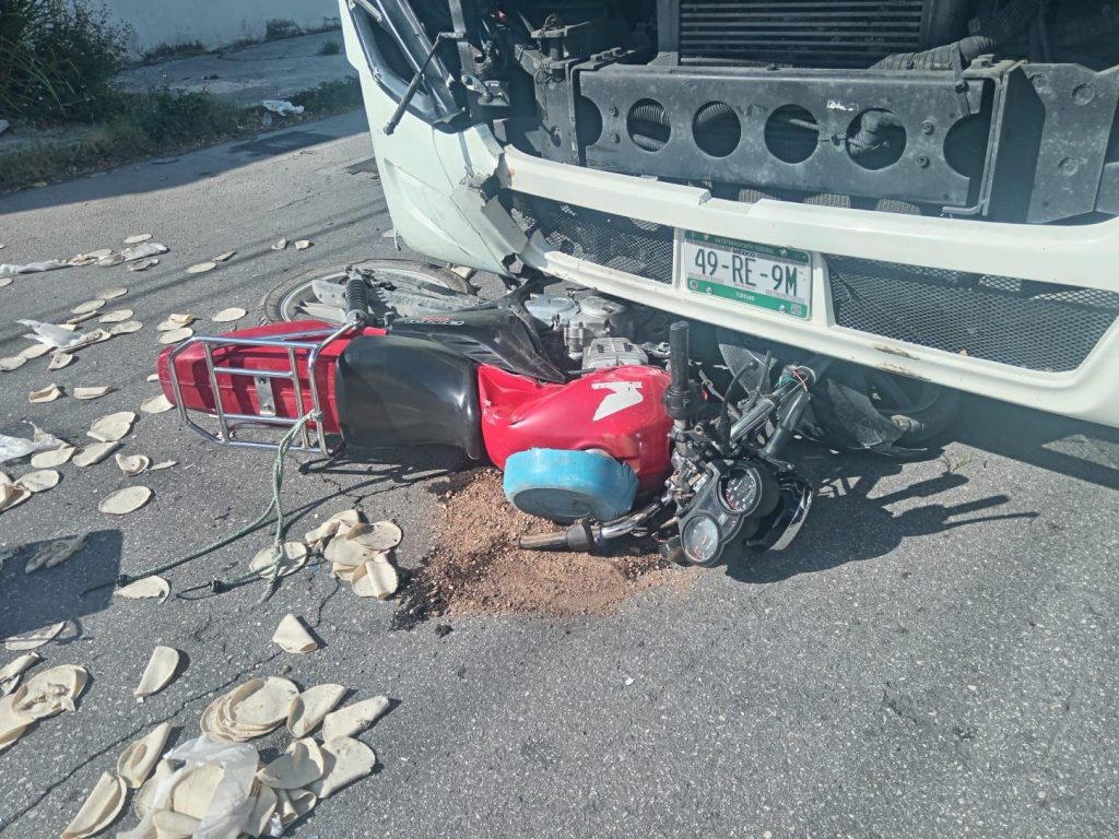 Un motociclista resultó lesionado la mañana de este jueves tras ser atropellado por un autobús de transporte público en la Supermanzana 222, en el cruce de las avenidas Vicente Suárez y Felipe Carrillo Puerto, en Cancún.