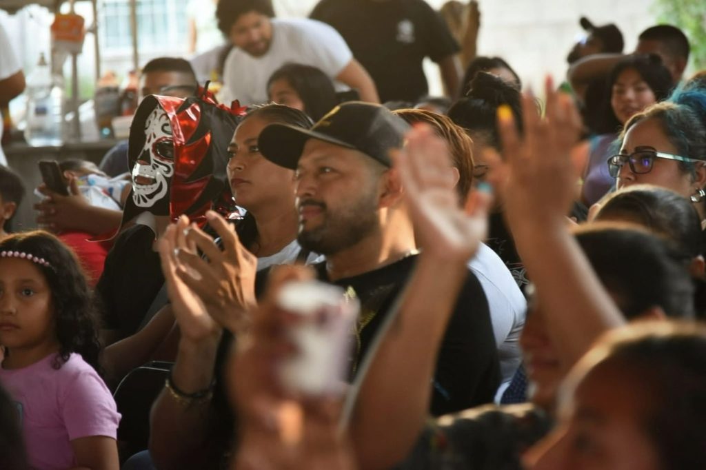 Tras estos momentos, la afición disfrutó de siete intensos combates de lucha libre, en los que el talento local se entregó en cada caída, desatando aplausos, gritos y la pasión característica de este deporte, reflejo de la cultura y las tradiciones mexicanas.