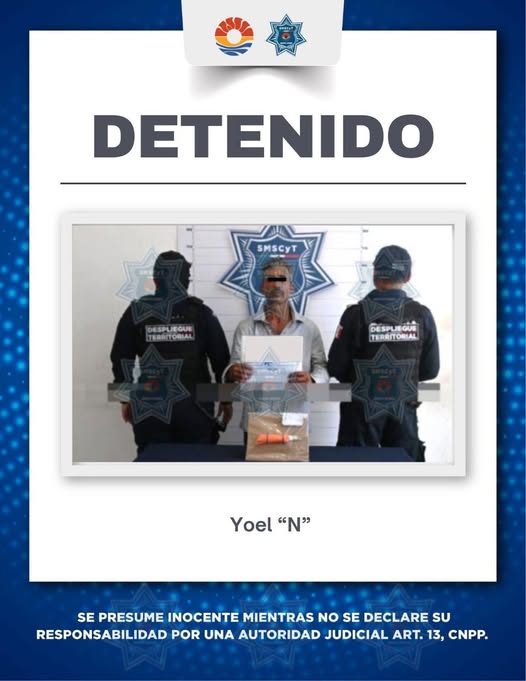 Por lo anterior, Yoel “N” fue detenido y puesto a disposición de la Fiscalía General del Estado para los fines legales conducentes.